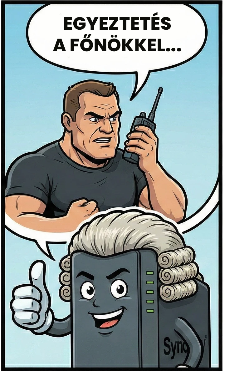 Amikor a kamerát csatlakoztatjuk, egy gyors "párbeszéd" zajlik le. A kamera felmutatja az igazolványát a switchnek. A switch, mivel nem tud olvasni, tovább küldi azt a NAS-nak. A NAS ellenőrzi a "Bírói listán", és ha minden rendben, visszaszól a switchnek: "MEHET!". Csak ekkor nyílik ki a kapu.