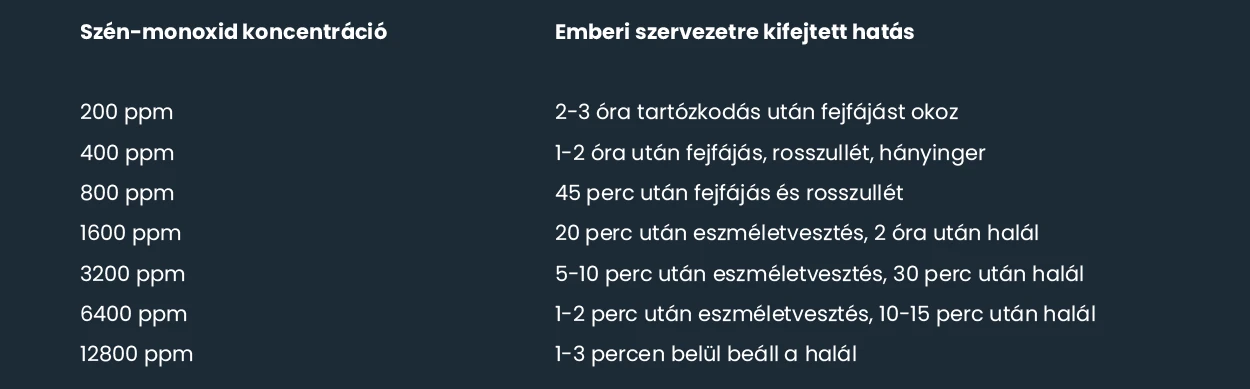 *A szén-monoxid koncentrációját leggyakrabban ppm-ben (parts per million) adják meg, amely egy milliomod részt jelent. Az 50 ppm azt jelenti, hogy egymillió levegő molekula közül 50 darab szén-monoxid molekula.