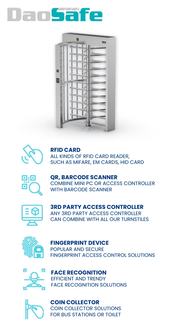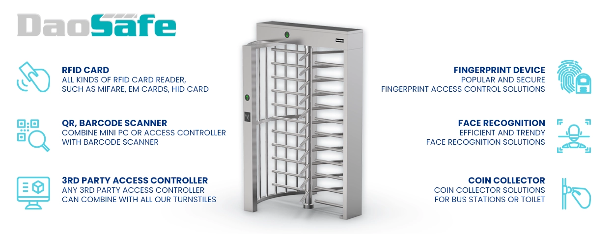 Daosafe offers a variety of access control solutions, including full-height turnstiles, speed gates, tripod turnstiles, swing gates, and other accessories. The various models are designed to meet a wide range of security requirements!