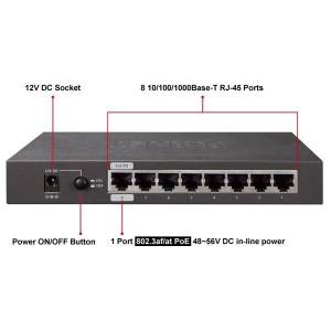 Planet GSD-1002M switch, device with 10 ports, for indoor use, device type is table-top support the following PoE standard, Layer 2 manageable, the switch power requirments is 12 V DC 802.3af/at PoE, the maximum bandwith is 1 Gbps, Gigabit LAN ports number is 8, Uplink ports number is 2, SFP ports number is 2, the switch backplane bandwith is 20 Gbps, the switch packet forwarding rate is 14.8 Mpps,