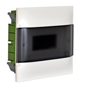 Könnyen beépíthető téglafalba süllyeszthető elosztódoboz, amely 1 sorban 12 modul elhelyezésére alkalmas. Átlátszó, füstszínű ajtaja egyszerű hozzáférést biztosít a belső elemekhez. A doboz 650°C-ig önkioltó, és IK07-es ütésállósággal rendelkezik. Tartalmaz védőföld és nulla elosztókapcsot, valamint DIN sínt a rögzítéshez.