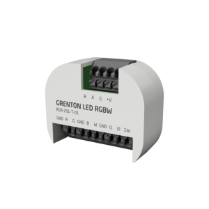 A Grenton LED RGBW modul lehetővé teszi a rákötött 12 VDC vagy 24 VDC feszültségű RGBW LED szalag fényerejének, színtelítettségének és színének zökkenőmentes vezérlését. LED szalag helyett akár 4 db különböző LED fényforrás fényerejét is szabályozhatjuk vele. Ezen a modulon található még 2 db szabadon konfigurálható jelbemenet és egy 1-wire bemenet is.