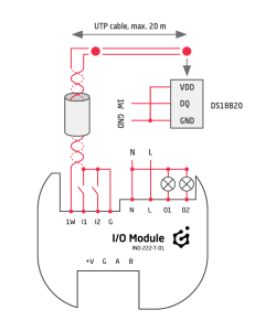 A Grenton 2 csatornás I/O moduljával 2 db egymástól független kisebb fogyasztású (max. 230 VAC, 1,5 A) eszközt tudunk be- és kikapcsolni (pl. lámpák, szelepek, kapuk, rekuperátor). Ezenkívül lehetővé teszi 2 db független, kontaktuskimenetet használó eszköz csatlakoztatását is a rendszerhez (pl. klasszikus kapcsolók, mozgás-, füst- vagy vízérzékelők). Ezen a modulon található még egy 1-wire bemenet is. A modul kialakításából adódóan fali kapcsolók mögé, mélyített 65 mm-es szerelődobozba is szerelhető.
