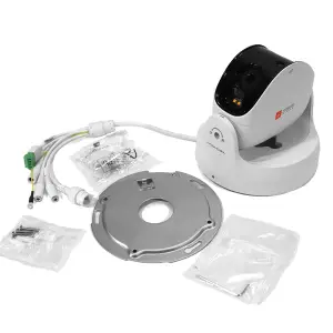 A kamera tápellátása történhet PoE rendszerű NVR, switch vagy tápfeladó segítségével is. A kamera 1 riasztásbemenetet és 1 relékimenetet kínál. Mikrofonbemenettel rendelkezik. Vonalkimenettel rendelkezik. A készüléken kártyafoglalat található az SD kártyák számára.