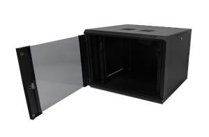 Fali, egyrészes rackszekrény, amely ideális választás kisebb szerverek, hálózati eszközök vagy egyéb rack kompatibilis berendezések elhelyezésére. Az első ajtó zárható edzett üvegajtó, nyitási iránya változtatható. Oldalfala levehető, zárral ellátva.