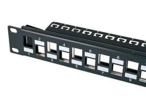Üres, 24 portos FTP Cat.6a patch panel, amely ideális nagy sebességű hálózatokhoz. A Cat.6a szabvány akár 10 Gbps adatátvitelt is támogat, az árnyékolt (FTP) kivitel pedig csökkenti az elektromágneses zavarokat. 1U magas kialakítása 19"-os rack szekrénybe illeszkedik. A levehető tehermentesítő segíti a kábelek rögzítését, a földelés pedig plusz védelmet nyújt.