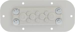 10 membrán átvezetővel (6x5-8mm / 2x8-15mm / 2x12-21mm)rendelkezik, kifejezetten AWOH252515 fém dobozhoz. A membrán rugalmas anyagból készül, amely biztosítja a ház tömítést és a vezetékek védelmét a sérülésektől. A membránátvezetőt 6 rögzítőcsavarral és a házzal együtt szállított tömítéssel lehet a házhoz rögzíteni.