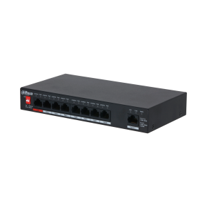 Dahua PFS3009-8ET1GT-96 1 db 10/100 Mbps Hi-PoE port, 7 db 10/100 Mbps PoE port, 1 db 10/100/1000 Mbps uplink port, nem menedzselhető switch, PoE budget 96W