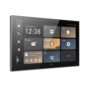 - Nagy méretű, 10,1 hüvelykes IPS kapacitív érintőkijelző 1920 × 1200 felbontással, amely éles, részletgazdag képet nyújt a kaputelefon hívások, IP kameraképek és rendszerfelületek megjelenítéséhez