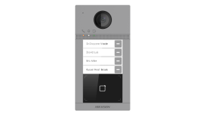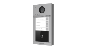 A Hikvision DS-KV8413-WME1(C)/Europe BV egy felületszerelt kivitelű,nyomógombos kialakítású, többlakásos kültéri video IP kaputelefon