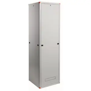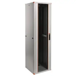 Álló rackszekrény, ideális választás szerverek, hálózati eszközök és egyéb informatikai berendezések tárolására. A készre szerelt, egyrészes kivitel biztosítja a gyors telepítést. Az ajtó biztonsági üvegből készült, zárszerkezettel és kulccsal ellátott, az oldallapok és a hátlap levehetők. A tető perforált, természetes szellőzést biztosít, és tetőventilátor beépítésére is előkészített. Az alul és felül elhelyezett kefés kábelvezetők esztétikus és biztonságos kábelrendezést biztosítanak. A szekrény magasságban állítható lábakkal rendelkezik. Négy darab, mélységben állítható 19"-os profilsín biztosítja a rugalmas szerelhetőséget. A szekrény földelő készlettel van ellátva, ütésállósága IK08. Nagyobb eszközök kényelmes elhelyezésére is lehetőséget ad, így tökéletes választás adatközpontokba, szervertermekbe és komplex IT-hálózatokhoz. RAL7035
