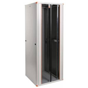 Álló rackszekrény, kifejezetten digitális infrastruktúrák számára tervezve. Ideális megoldás irodákba, adatközpontokba és ipari környezetekbe. A dupla, biztonsági üvegajtó zárszerkezettel és kulccsal ellátott, az oldallapok és a hátlap levehetők. A tető perforált, természetes szellőzést biztosít, és tetőventilátor beépítésére is előkészített. A kábelbevezetés kikönnyített, kitörhető nyílásokon keresztül lehetséges a tetőn, alján és hátulján. A szekrény magasságban állítható lábakkal rendelkezik. Négy darab, mélységben állítható 19"-os profilsín biztosítja a rugalmas szerelhetőséget. A szekrény földelő készlettel van ellátva, ütésállósága IK08. Nagyobb teljesítményű, kritikus informatikai rendszerek biztonságos, rendezett és szellőző elhelyezésére alkalmas. RAL7035