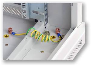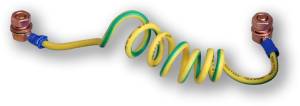 1 méter hosszú, sárga-zöld színű földelő kábel, amelyet elosztószekrények és elektromos berendezések biztonságos földelésére használnak, biztosítva a fémrészek megbízható összekötését a védőfölddel, ezáltal növelve az üzembiztonságot és az érintésvédelem hatékonyságát.