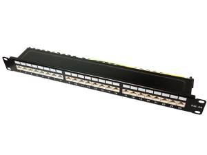 A 24 portos FTP Cat6A patchpanel megbízható és stabil megoldást kínál nagy sebességű, árnyékolt hálózatokhoz. A Cat6A szabvány támogatja a 10 Gbps adatátvitelt, míg az FTP kivitel hatékony védelmet nyújt az elektromágneses zavarok ellen. A panel 1U magas, szabványos 19"-os rack szekrénybe szerelhető. A fix tehermentesítő biztonságos kábelrögzítést biztosít.