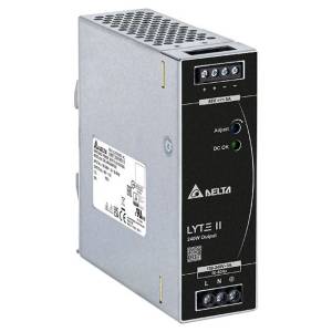 DIN sínre szerelhető ipari tápegység, amely a Delta LYTE II sorozatába tartozik. Kompakt méretének és nagy hatékonyságának köszönhetően ideális választás vezérlőszekrényekbe, gépvezérlő rendszerekhez, automatizálási megoldásokhoz és biztonságtechnikai eszközök tápellátásához. Túlterhelés esetén konstansáram-módban dolgozik, rövidzárlat esetén pedig automatikus “hiccup” üzemmódba vált, ami a hiba megszűnése után magától visszaáll.