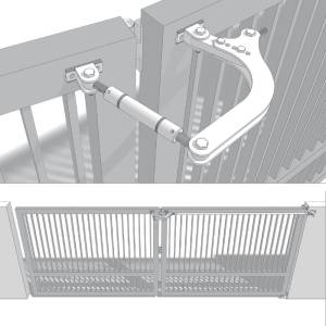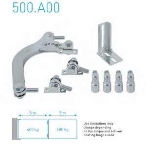 Vasalat szett harmónika rendszerű szárnyas kapukhoz, 1 szárnyhoz, 5 méteres szárnyszélességig, 400kg kapusúlyig, olyan helyekre ajánlott, ahol nincs elegendő hely a kapuszárny kinyílásához, szett tartalma: 1db állítható összekötő rúd, 1db kihajtható konzol, 2db L konzol