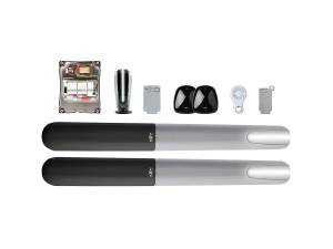 24Vdc szárnyaskapu szett burkolat világítással, max 4m-es 300kg-os kapuszárnyig - PRÉMIUM KATEGÓRIA; a 2 darab elegáns és formatervezett motor beépített nyitási mechanikai ütközővel van ellátva és lehetőség van a SUB távirányítóval történő kuplungkioldásra. Az NLS (Éjszakai Fényrendszer) tagja, aminek köszönhetően a kaput párhuzamosan lehet távirányítóval vagy okostelefonos App-on keresztül is irányítani bluetoothos interfész segítségével. Ehhez szükség van a 14A vezérlésre és a felhasználói KUBE, a távoli programozáshoz pedig a KUBE PRO okos eszközre.