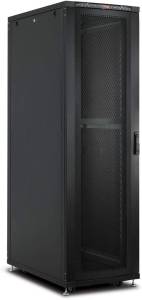 Beltéri álló rackszekrény, amely a CK/CS sorozat része. Ez a szekrény ideális választás szerverek, hálózati eszközök és egyéb IT berendezések biztonságos tárolására és elhelyezésére. Az elülső ajtó bal felső sarkában beépített digitális hőmérő található LCD kijelzővel, 1 méteres kábellel és lítium elemmel. Az első és hátsó ajtó 63%-ban perforált, az oldalak leszerelhetőek, és oldalanként egypontos reteszelésű mechanikus zárral rendelkeznek. A szekrény nem lapra szerelhető, szintezőlábakkal van ellátva. Két pár számozott rasztersín található benne, amelyek megkönnyítik az eszközök rögzítését és a kábelezés átláthatóságát. A szekrény passzív szellőzéssel rendelkezik, de aktív ventiláció is lehetséges kiegészítő ventilátorral. Alsó és felső kábelkivezető nyílásokkal és takarólappal rendelkezik. Súlya 142 kg. RAL9005