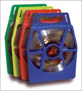 A hozzá tartozó piros, műanyag szalagtáska kézhez álló, forgatási lehetőséggel és zsebekkel ellátott. A szalag kifejezetten ajánlott erős szorítást igénylő helyekre.