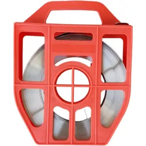 Rozsdamentes acélból készített rögzítő szalag, amely kifejezetten olyan szerelési, rögzítési feladatokra lett kialakítva, ahol a korrózióállóság és mechanikai szilárdság fontos. A tekercs 19,05 mm szélességgel rendelkezik, valamint 50 m hosszban van csomagolva, piros műanyag szalagtáskában.