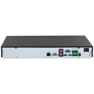A készülék 4 riasztásbemenettel és 2 relékimenettel rendelkezik. A rögzítő 1 x 10/100/1000 Mb Ethernet csatlakozót tartalmaz.
