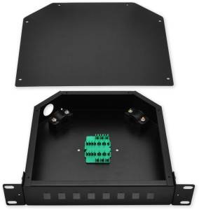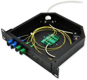 10"-es rack-szekrénybe szerelhető optikai elosztó (optikai doboz), amelyet beltéri optikai hálózatok rendezett és biztonságos kialakításához terveztek. A készülék 1U magasságú, alumíniumházas kivitelű, és legfeljebb nyolc optikai csatlakozó elhelyezésére alkalmas (SC simplex, LC duplex vagy E2000 simplex). A doboz belsejében kialakított tartó található a szálhegesztések védelméhez és rendszerezéséhez, valamint két kábelbevezető nyílás segíti a be- és kivezetést.