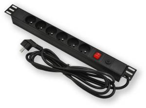 19 "-es rack szekrénybe szerelhető, 1U magas tápegység-panel (PDU), amely hat darab 230 V-os hálózati aljzatot biztosít a csatlakoztatott berendezések számára. A készülék védőérintkezős aljzatokkal rendelkezik, beépített főkapcsolóval, így lehetővé teszi az eszközök egyszerű áramtalanítását.