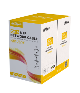 , Dahua PFM920-6U Cat.6 UTP kültéri kábel, PE köpeny, 305 m, U/UTP kábel, a kábel szabvány szerinti besorolása: Cat.6, a kábel altípus szerinti felhasználása: informatikai, a kábel felépítés részletei: érpáranként sodrott, a kábel színe: fekete, felhasználás szerint: kültéri, erek szigetelése: polietilén, köpeny szigetelése: PE köpeny, a kábel hossza: 305 méter, a kiszerelés fajtája: doboz