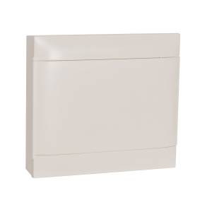 Könnyen felszerelhető, falon kívüli elosztódoboz, amely 2 sorban 18 modul elhelyezésére alkalmas.Fehér színű ajtóval rendelkezik. A doboz 650°C-ig önkioltó, és IK07-es ütésállósággal rendelkezik. Tartalmaz védőföld és nulla elosztókapcsot, valamint DIN sínt a rögzítéshez.