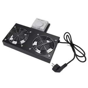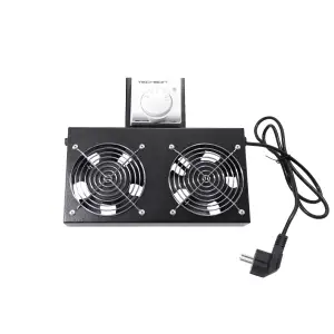 Rackszekrénybe építhető ventilátoregység, 2 ventilátorral, analóg termosztáttal felszerelve. A készülék hatékony légáramlást biztosít a 19''-os TechSon rackszekrényekben, ezzel segítve a hőtermelő eszközök hűtését. A felső lemezbe szerelhető, fekete színű egység megbízható működést és hőmérséklet-szabályozást kínál.