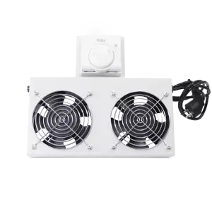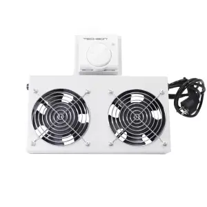 Rackszekrénybe építhető ventilátoregység, 2 ventilátorral, analóg termosztáttal felszerelve. A készülék hatékony légáramlást biztosít a 19''-os TechSon rackszekrényekben, ezzel segítve a hőtermelő eszközök hűtését. A felső lemezbe szerelhető, világosszürke színű egység megbízható működést és hőmérséklet-szabályozást kínál.