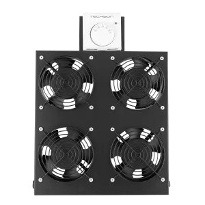 Rackszekrénybe építhető ventilátoregység, 4 ventilátorral, analóg termosztáttal felszerelve. A készülék hatékony légáramlást biztosít a TechSon rackszekrényekben, ezzel segítve a hőtermelő eszközök hűtését. A felső lemezbe szerelhető, fekete színű egység megbízható működést és hőmérséklet-szabályozást kínál.