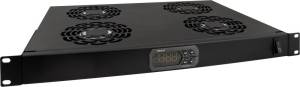 1U magas, 19"-os rack szekrénybe építhető fém ventilátoregység, 4 nagy teljesítményű ventilátorral. A készülék hatékony légáramlást biztosít (akár 440 m³/óra), ezzel támogatva a hőtermelő eszközök hűtését. Előlapi kapcsolóval vezérelhető, 230 V-os tápellátással működik, és beépített digitális termosztáttal rendelkezik.