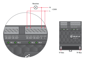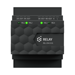 A Grenton 4 csatornás DIN sínes relémodulja 4 db különböző nagy teljesítményű (csatornánként max. 230 VAC / 16 A) eszköz (pl. világítás, elektromos fűtés, elektromos aljzatok) kapcsolását teszi lehetővé. Ez a modul energiafogyasztás-mérővel van ellátva, amely lehetővé teszi a csatlakoztatott eszközök fogyasztásának monitorozását is. A reléket haszálhatjuk szárazkontaktok létrehozására is, és akár kisebb feszültséget (pl. 12 VDC, 24 VDC) is kapcsolhatunk velük.