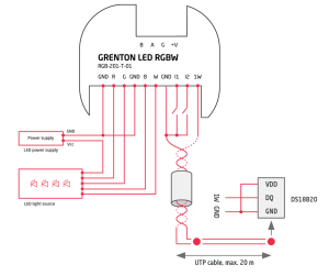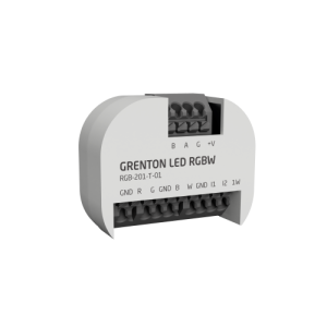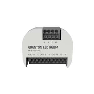 A Grenton LED RGBW modul lehetővé teszi a rákötött 12 VDC vagy 24 VDC feszültségű RGBW LED szalag fényerejének, színtelítettségének és színének zökkenőmentes vezérlését. LED szalag helyett akár 4 db különböző LED fényforrás fényerejét is szabályozhatjuk vele. Ezen a modulon található még 2 db szabadon konfigurálható jelbemenet és egy 1-wire bemenet is.