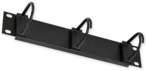 10"-es, 1U magas kábelrendező panel, amely szerver- és hálózati rack szekrényekbe való beépítésre készült. Feladata, hogy a szekrényben futó kábeleket rendezetten, átláthatóan vezesse és rögzítse, ezzel megkönnyítve a karbantartást és csökkentve a kábelrengeteget. A panel a rack elülső síneire szerelhető, masszív fém kivitelű, fekete színű, és három kábelrögzítő nyílással rendelkezik.