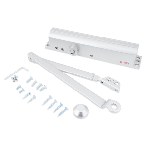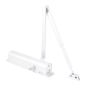 Az SA-901-6BW egy karos ajtóbehúzó, termostabil hidraulikus olajjal 25-150 kg-os ajtókhoz. Az ajtót akár 180°-ban is tudja nyitni, valamint külön állítható a zárási illetve a csukási sebesség. Az EN 6-os csukóerő maximum 1500 mm-es ajtó mozgatására alkalmas. Ideális nagyobb méretű ajtókhoz.