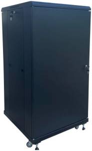Álló rackszekrény, amely ideális választás szerverek, hálózati eszközök és egyéb IT berendezések biztonságos tárolására és elhelyezésére. Az első ajtó zárható edzett üvegajtó, oldalfala levehető, zárral ellátva. A szekrény kompatibilis a legtöbb szabványos rack-eszközzel. Kerekekkel felszerelt, melyek megkönnyítik a mozgatását. RAL9004