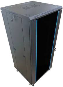 Álló rackszekrény, amely ideális választás szerverek, hálózati eszközök és egyéb IT berendezések biztonságos tárolására és elhelyezésére. Az első ajtó zárható edzett üvegajtó, oldalfala levehető, zárral ellátva. Kompatibilis a legtöbb szabványos rack-eszközzel. Kerekekkel felszerelt, melyek megkönnyítik a mozgatását. RAL9004