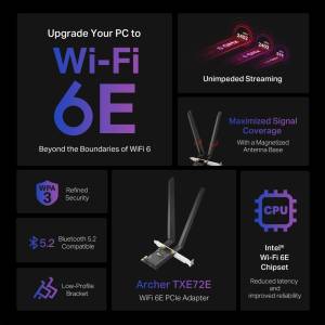 WiFi6E szabvány – Bővíts a tisztább, szélesebb 6 GHz-es sávra a nagyobb sávszélesség és a nagyobb sebesség érdekében. Jelenleg a 6 GHz-es sáv csak Windows 11 rendszeren támogatott.