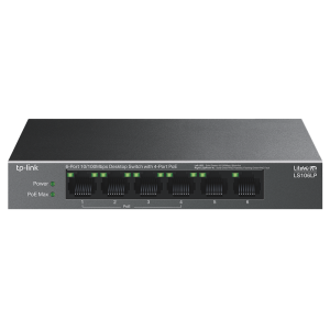 6 portos 10/100Mbps asztali switch 4 port PoE.